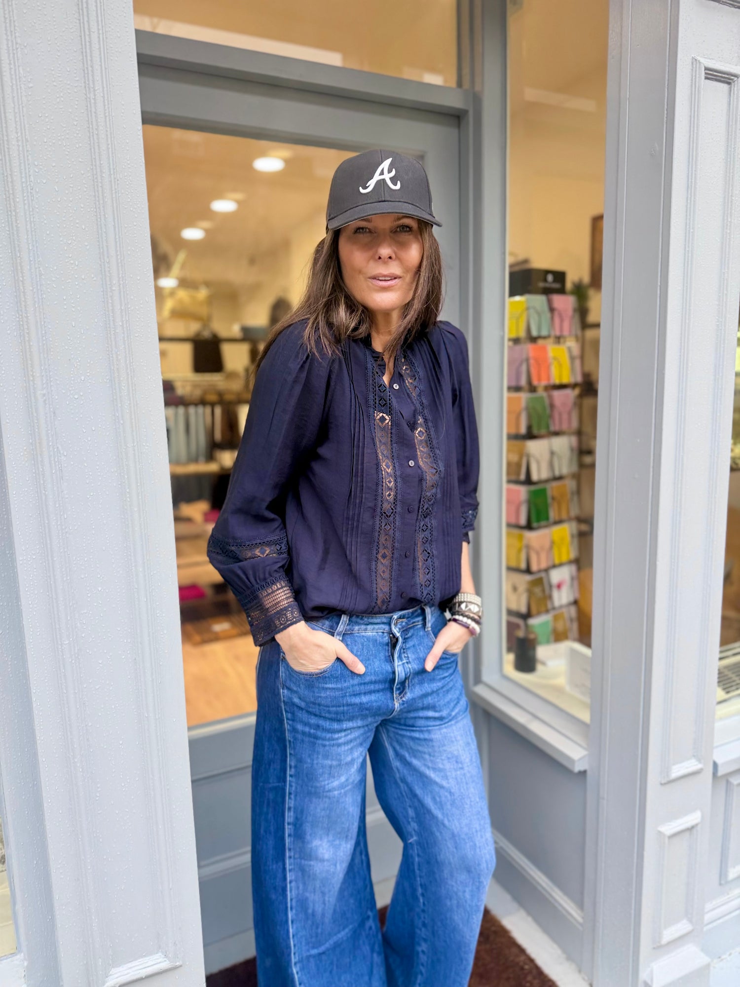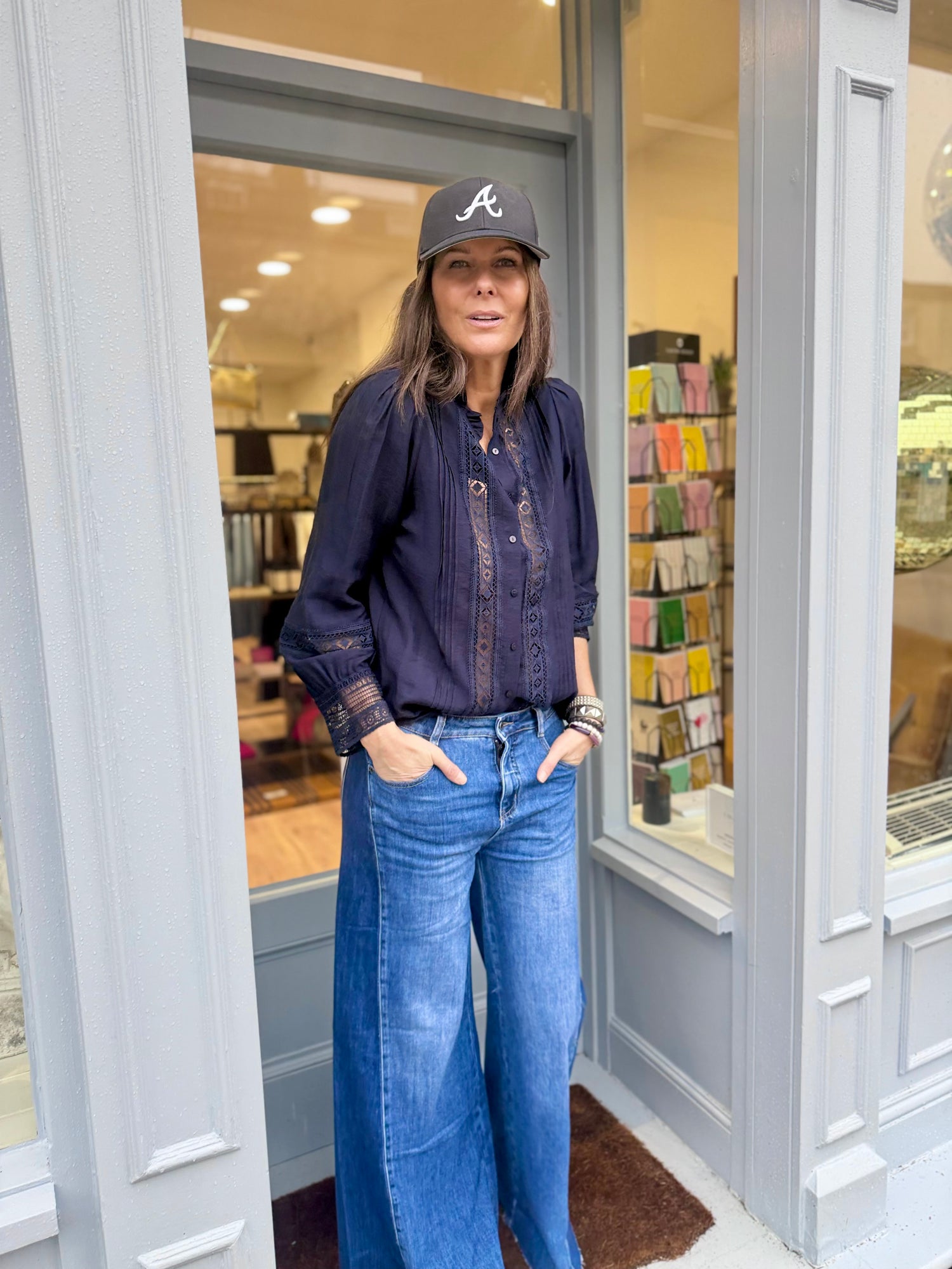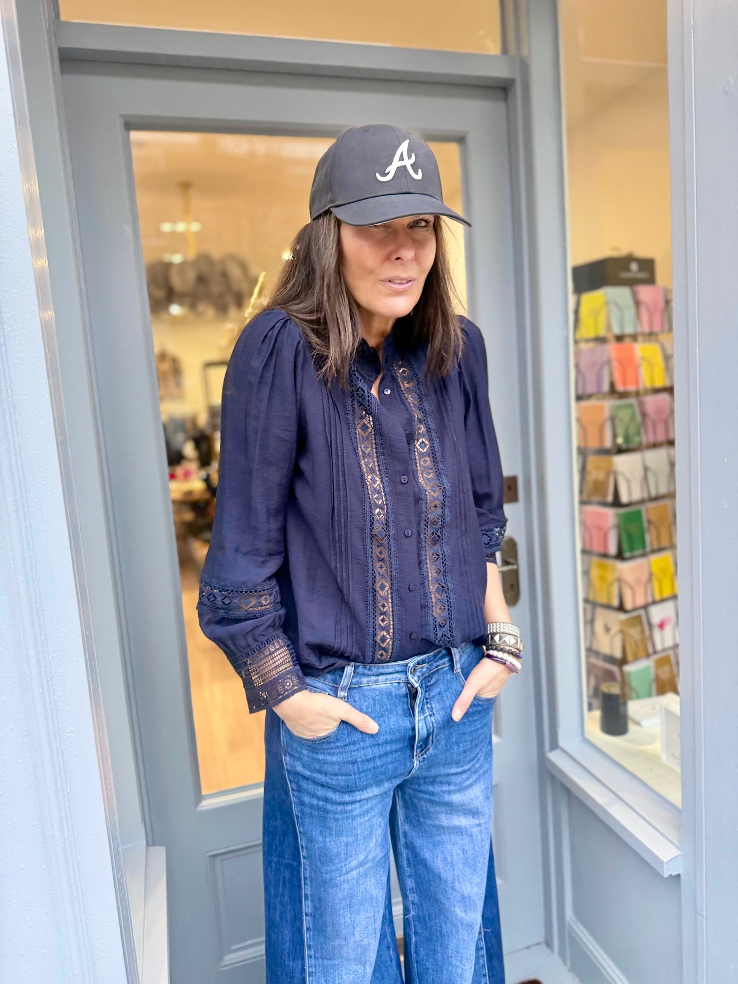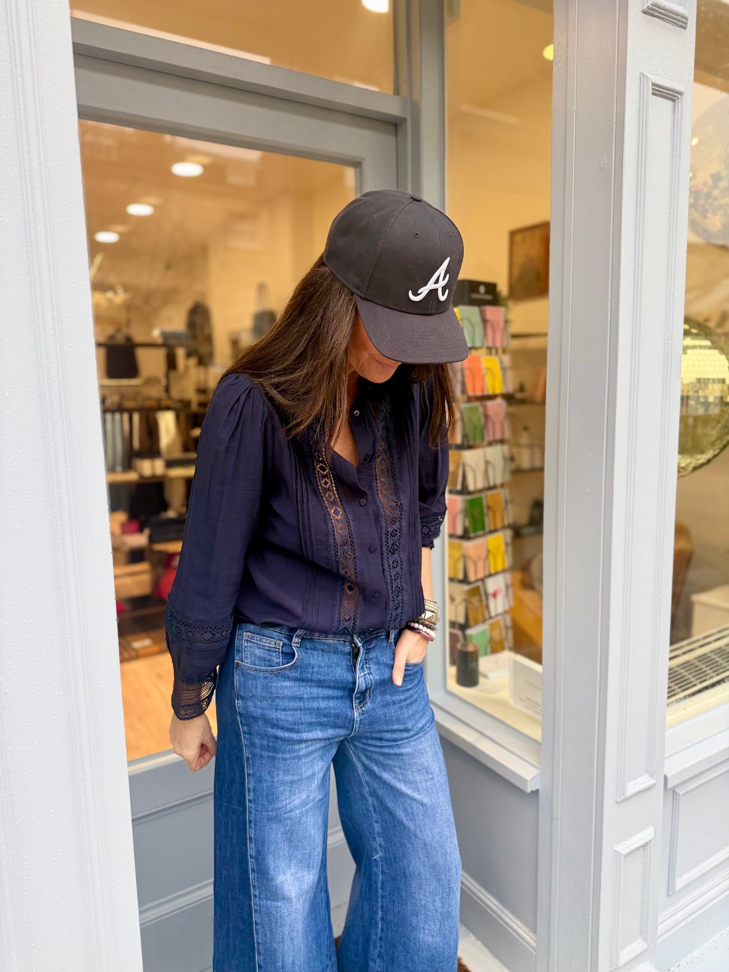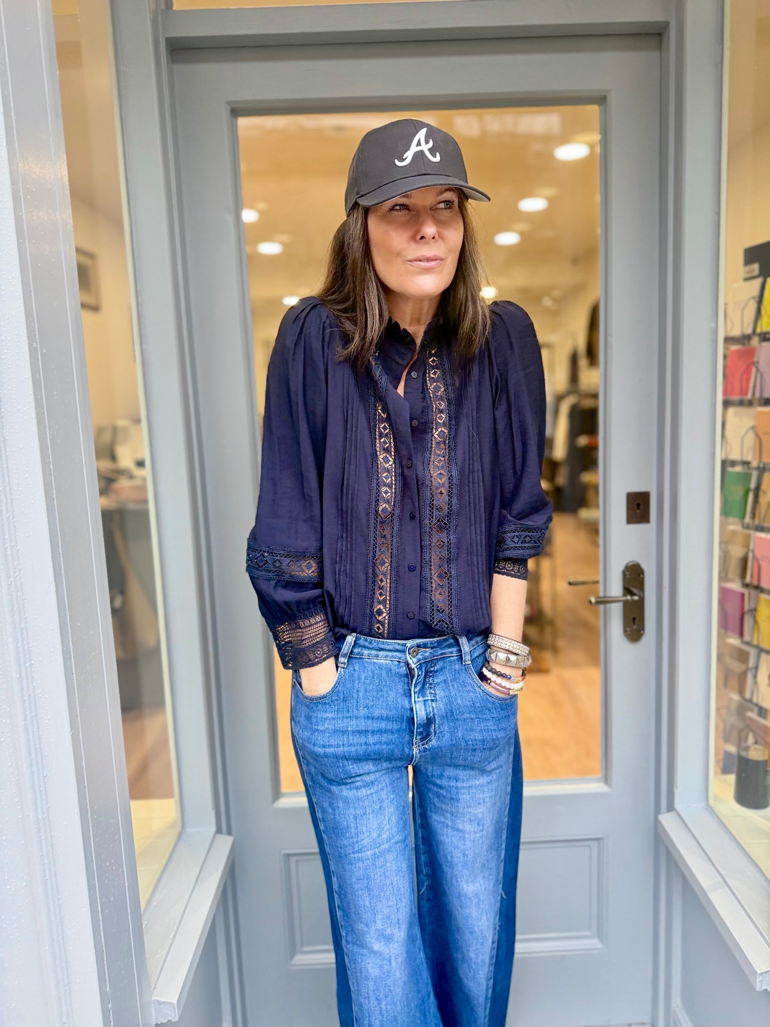 The Atticus Shirt is a transitional piece perfect for any occasion. Its feminine design features a button up front, and grandad collar with ruffle, all accented with elegantly embroidered, cut out panels. The classic color adds a touch of sophistication. A must-have for any wardrobe.