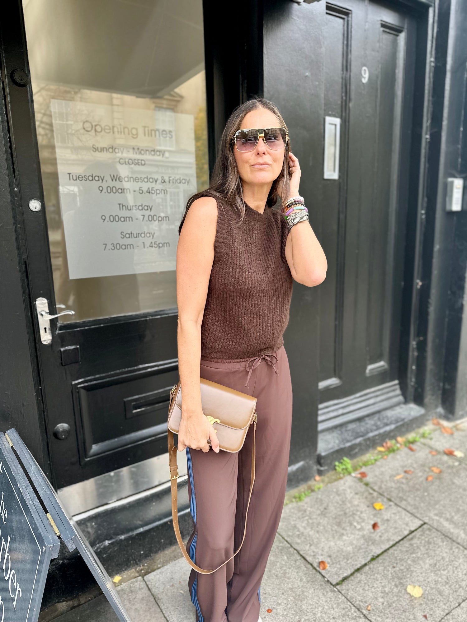 Bubblegum Crew Neck Vest - Chocolate is currently sold out. Available for pre-order only.