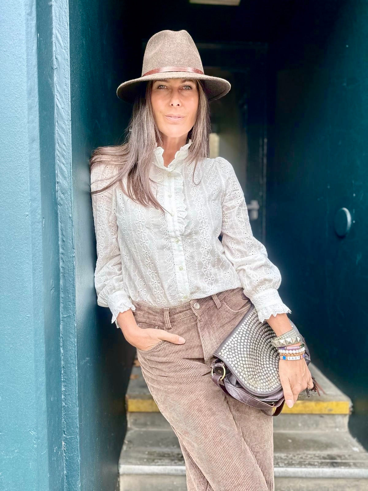 Elevate your wardrobe with the Calista blouse, featuring intricate embroidery and a delicate ruffle neck that evoke refined Parisian style. Its long sleeves provide graceful coverage while the boho-inspired design adds a relaxed, artistic flair. Crafted to blend elegance with effortless charm, this blouse suits both casual and polished looks with ease.