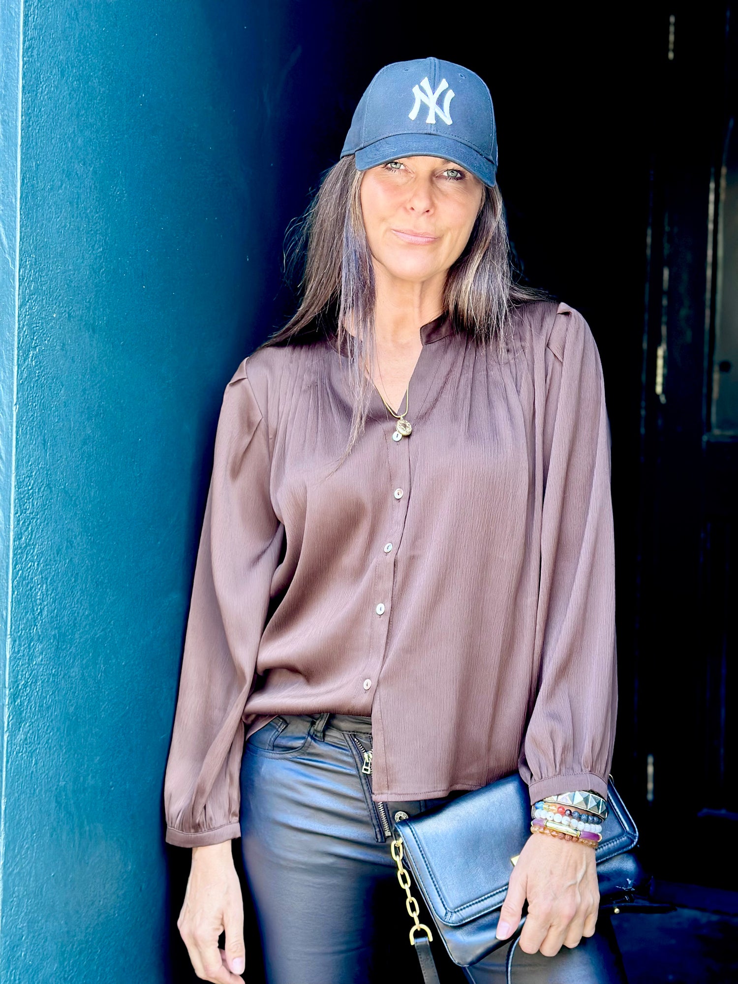 Carrie Blouse - Chocolate - S is currently sold out. Available for pre-order only.
