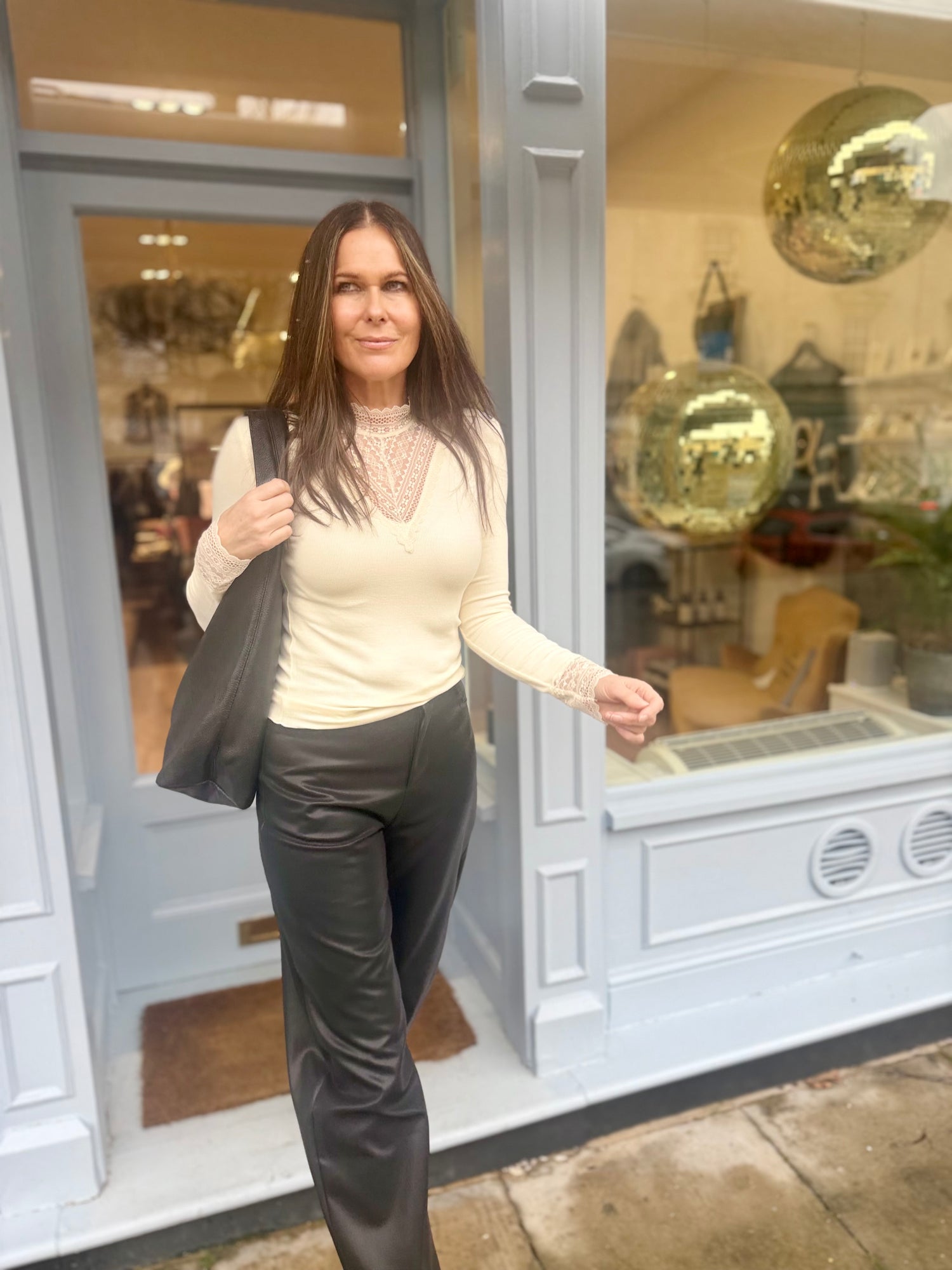 A lightweight essential designed for effortless layering. The Clare Top features delicate lace trim at the cuff and neckline, elevating a simple silhouette with understated sophistication. Its airy fabric moves seamlessly under outerwear or stands alone as a versatile base piece. Choose from three curated colours to build your capsule wardrobe.