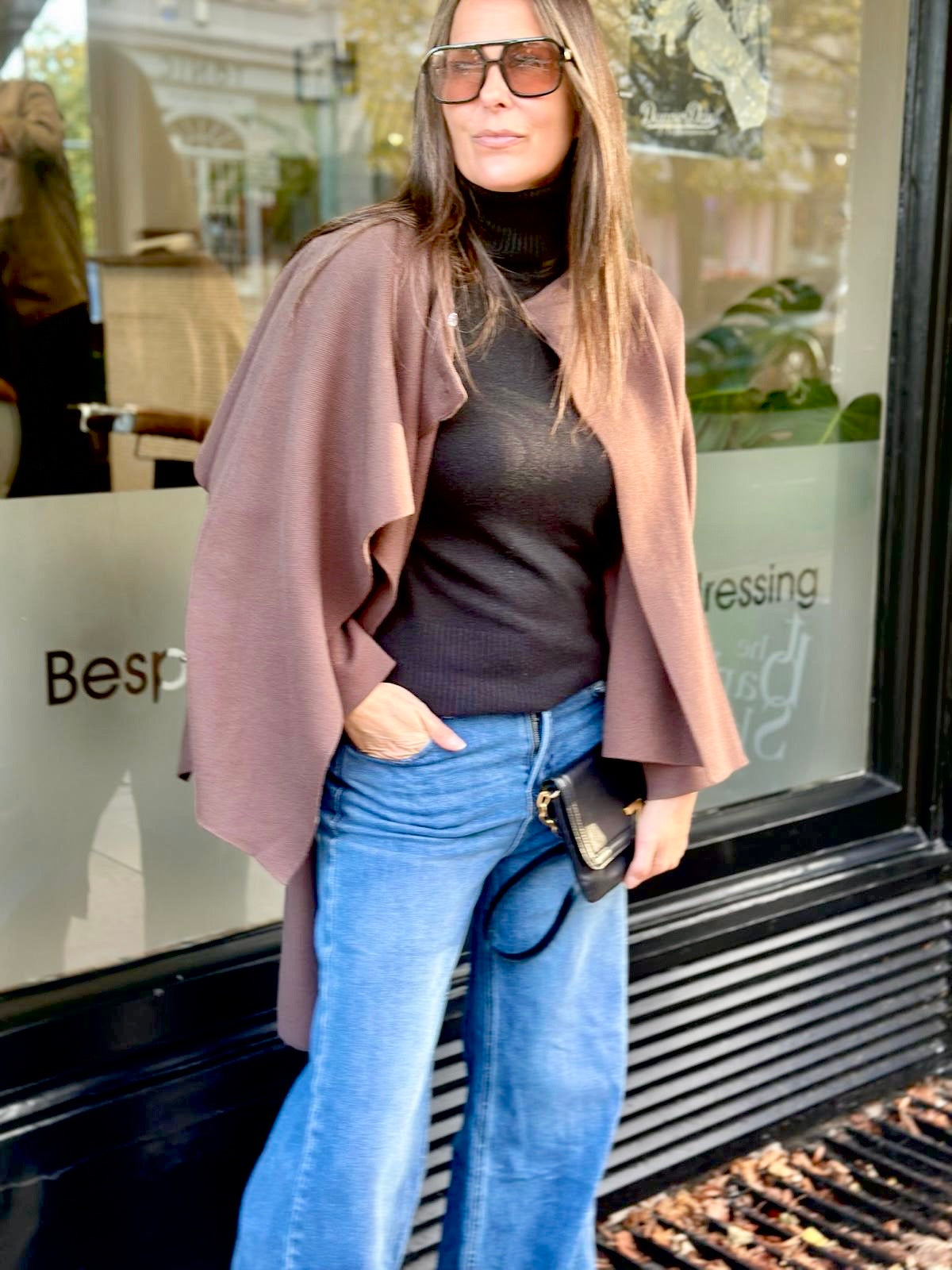 Fliss Knitted Cape with Scarf - Chocolate is currently sold out. Available for pre-order only.