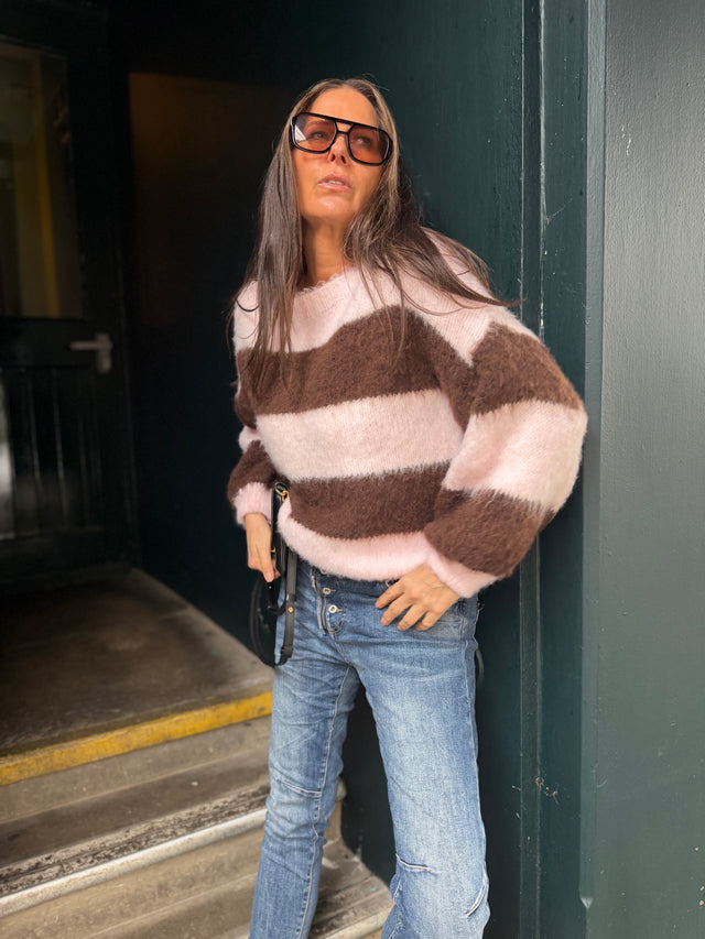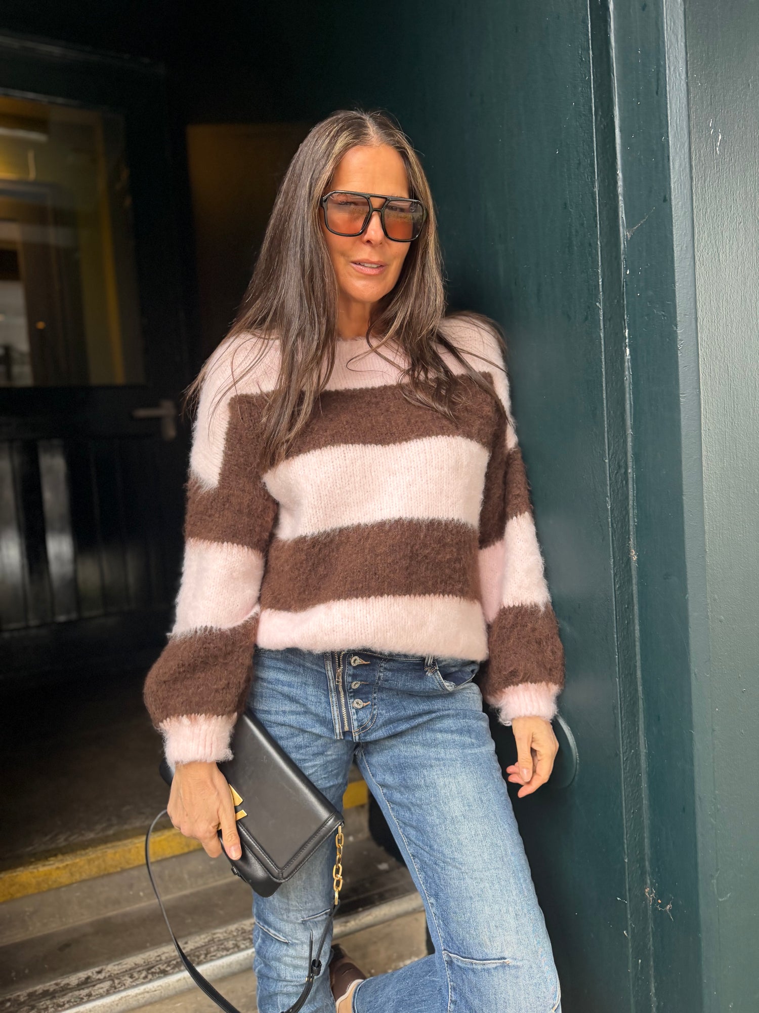 Freddie Stripe Knit - Baby Pink/Choc is currently sold out. Available for pre-order only.