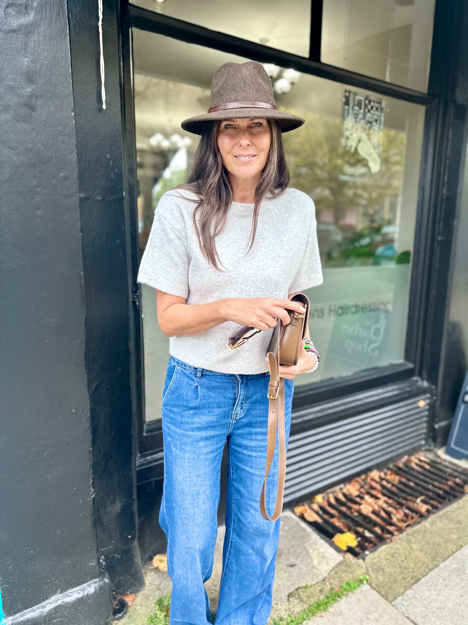 Harriet Short Sleeve knit - Grey is currently sold out. Available for pre-order only.