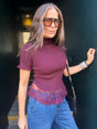 Ophelia Short Sleeve Turtleneck - Cherry