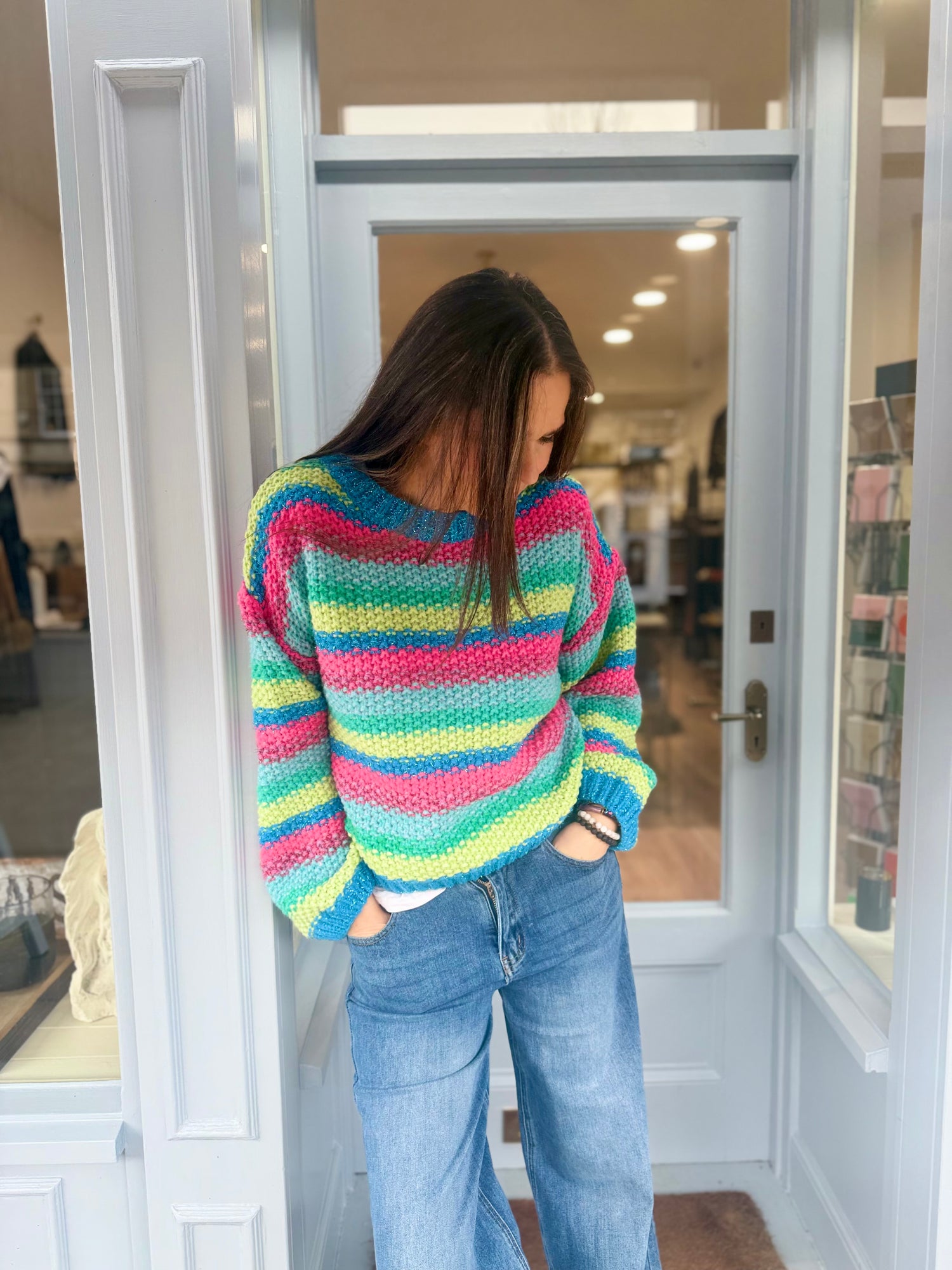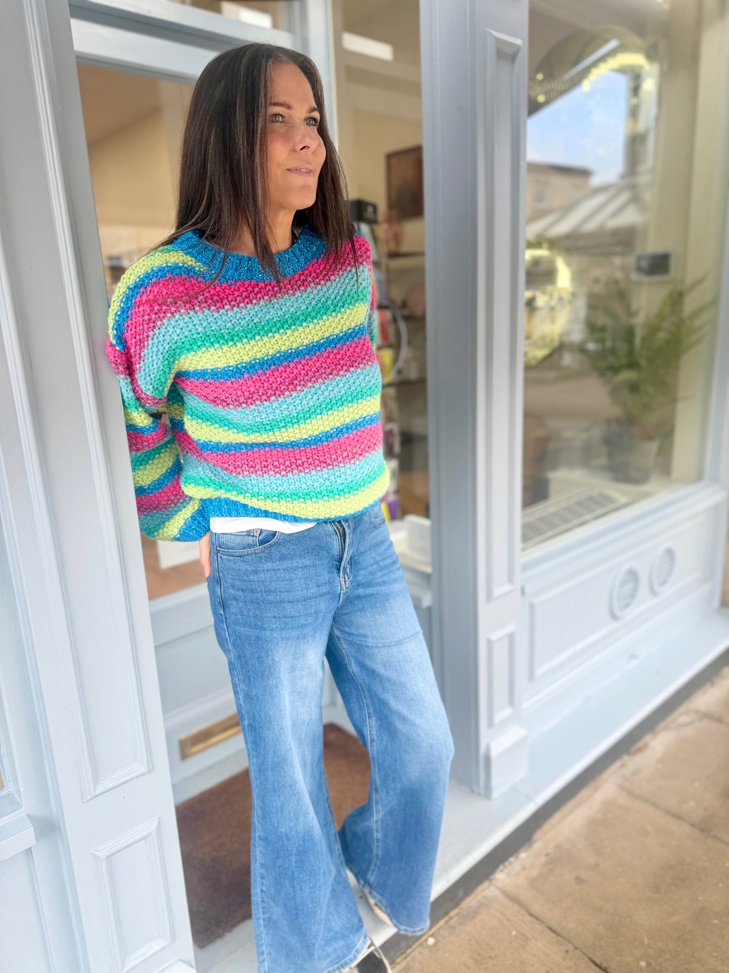 Make a statement with the Rainbow Knit crew neck featuring eye-catching metallic accents that shimmer with every wear. Offered in 2 distinctive colourways. A versatile essential that transforms any outfit with luxury detail and contemporary style.