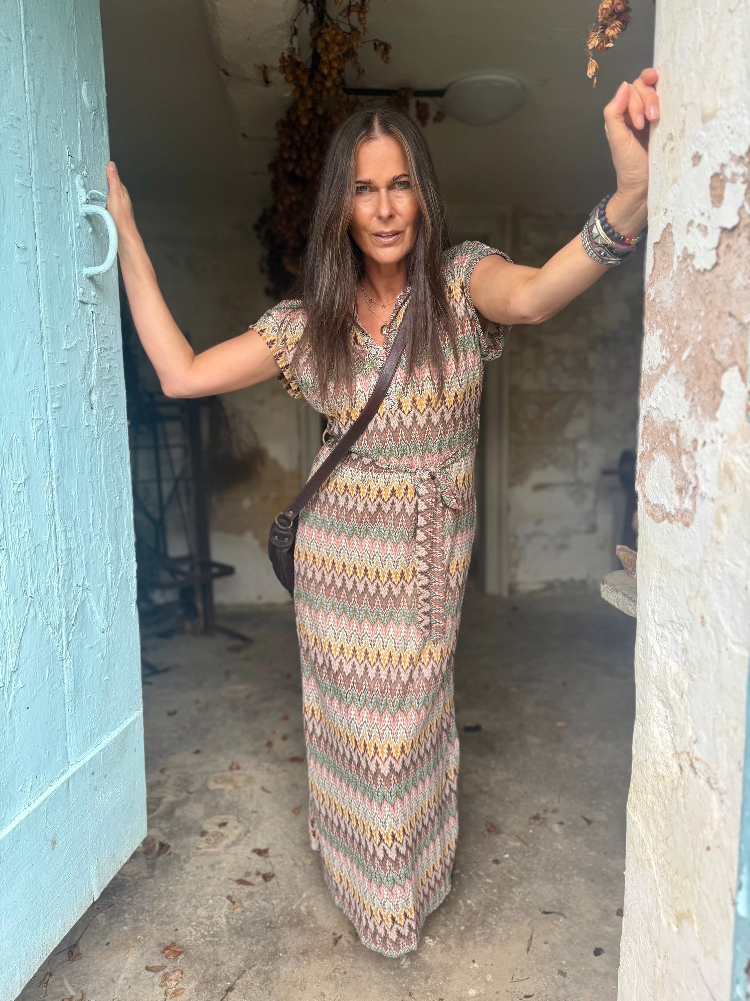 Effortless elegance meets everyday comfort in this printed maxi dress. Designed with a flattering V-neckline and adjustable tie waist for a customizable fit, it features comfortable cuff sleeves and stretchy fabric and full lined that moves with you. Perfect for layering or wearing solo, this versatile piece transitions seamlessly from beach, a casual shopping day to evening.