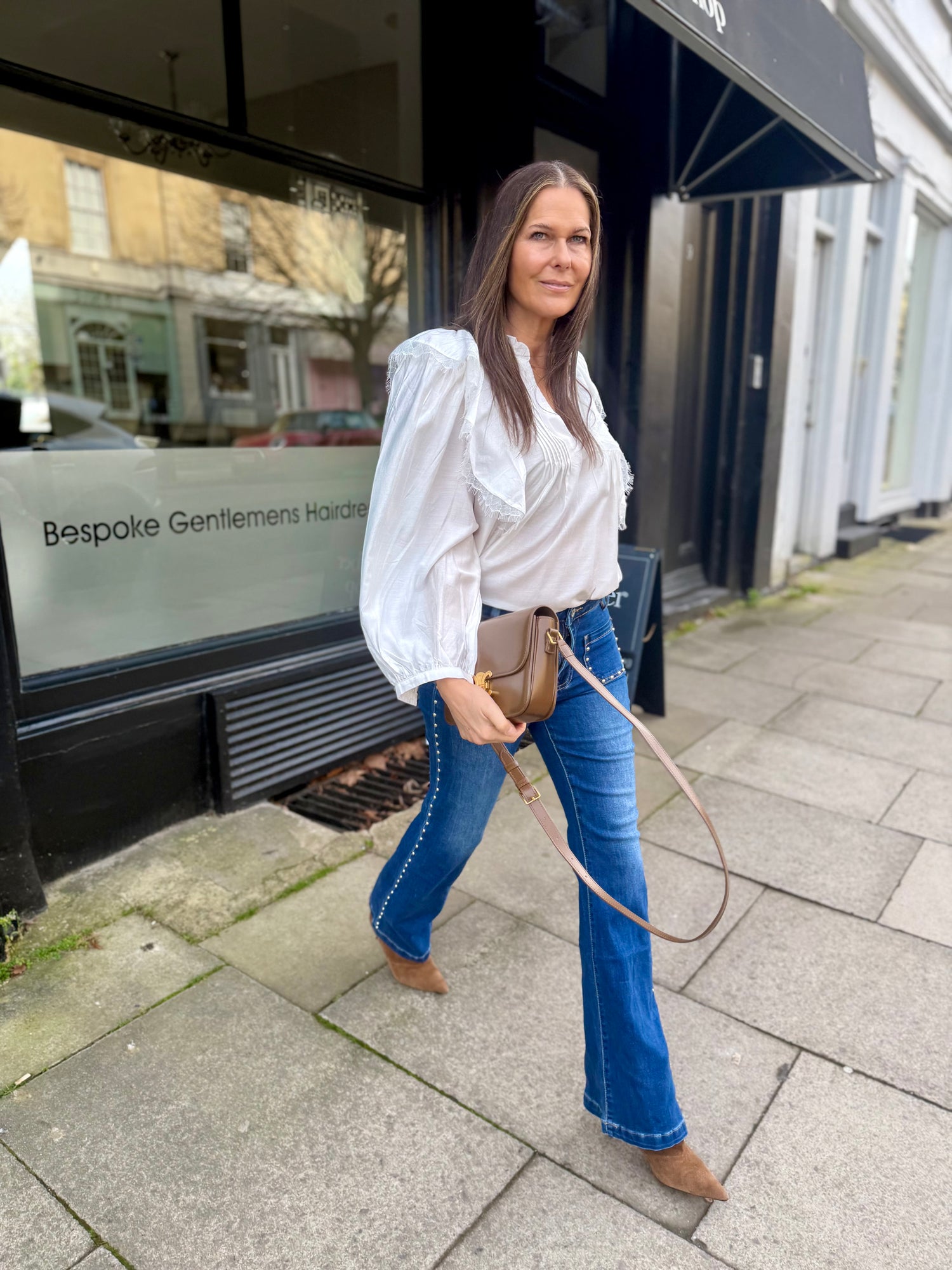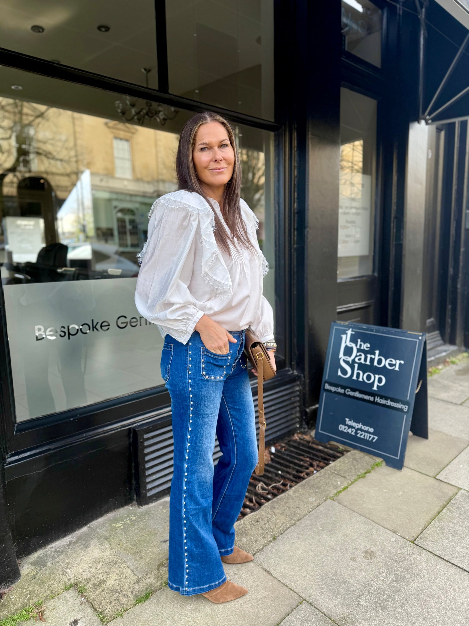 Stella Studded Bootcut Jean - Blue - XS is currently sold out. Available for pre-order only.