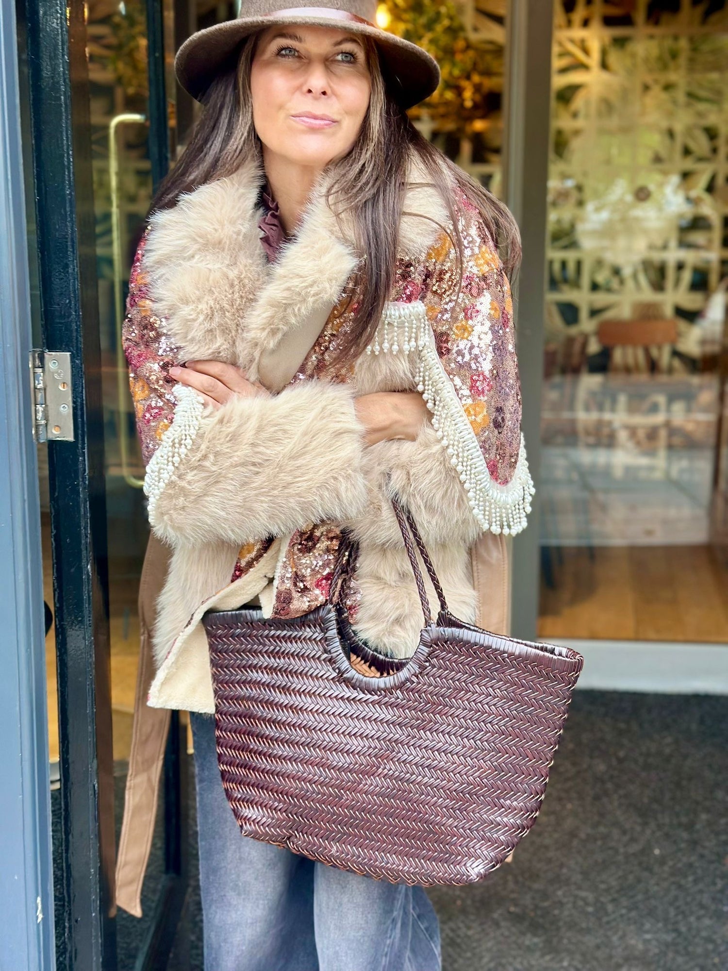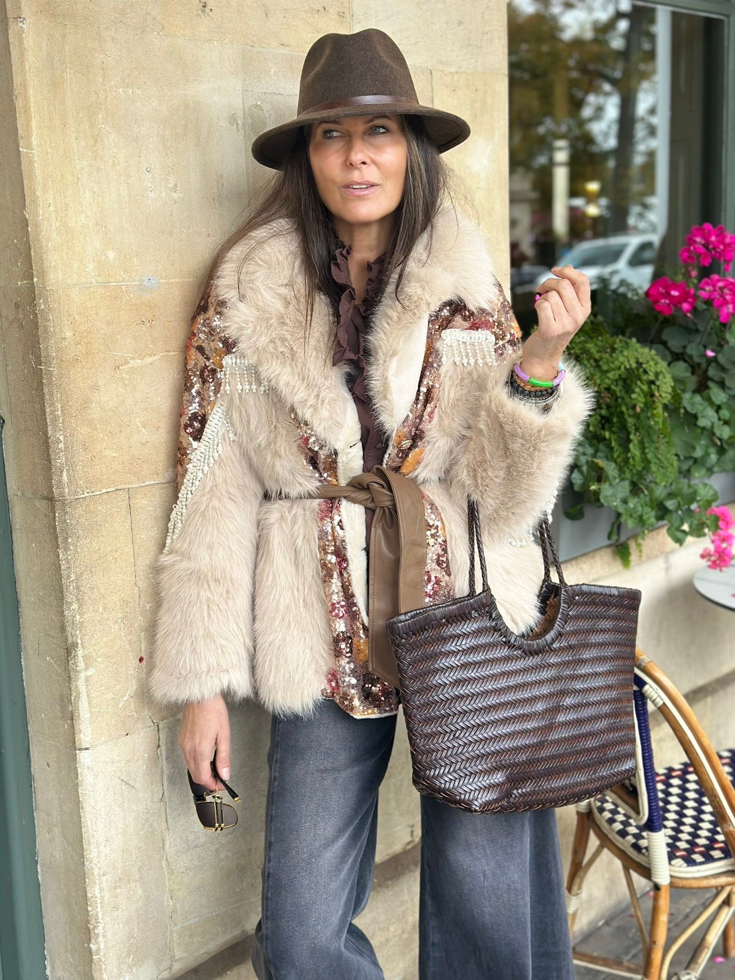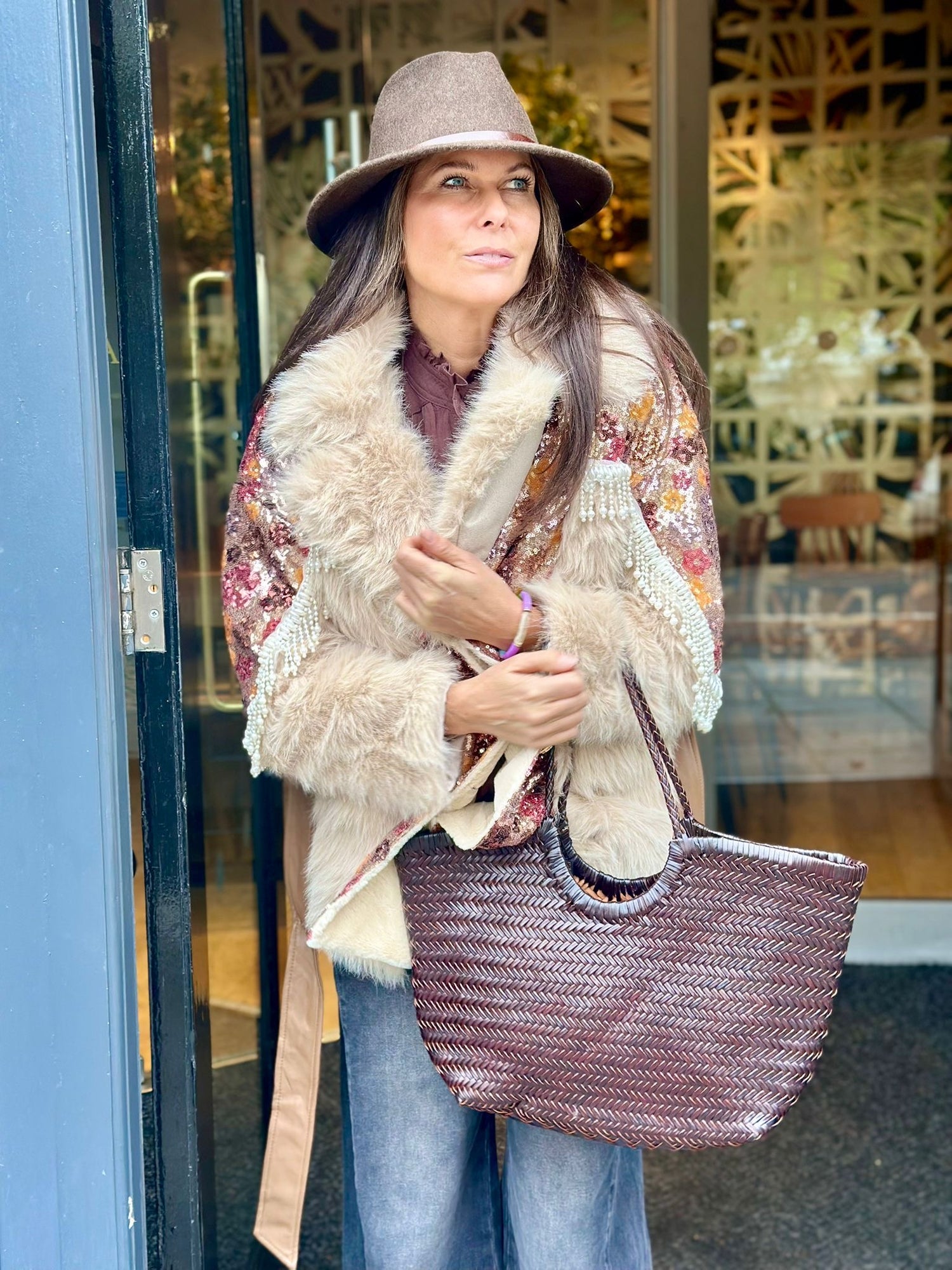 The Zoey Embellished Jacket commands attention with its richly adorned sequin detailing and sumptuous faux fur collar, combining luxury and bold style. A sleek faux leather belt cinches the waist, enhancing the silhouette while adding an edgy contrast. Perfect for those who want to stand out effortlessly, this jacket blends glamorous textures with expert craftsmanship for a statement-making wardrobe essential.
