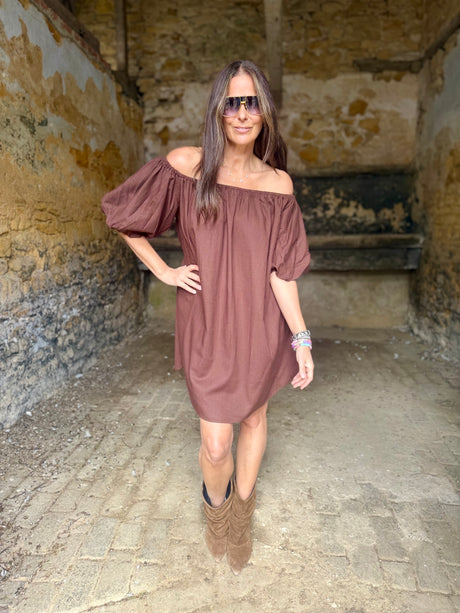 Off The Shoulder Dress- Chocolate