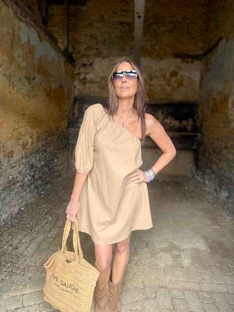 £59.95Unit price /UnavailableDen One Shoulder Smock Dress - Camel