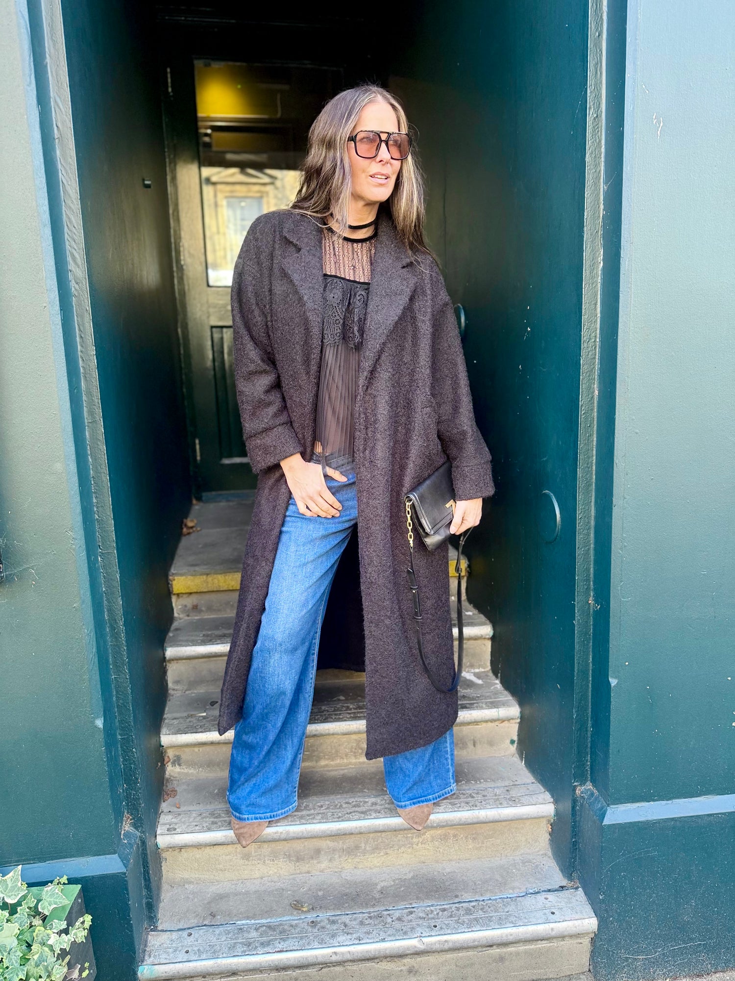 This Mara Knitted Neutral Jacket is perfect for layering up with its long-line design and cosy collar. Made with a knitted fabric, it's both comfortable and stylish. Stay warm and trendy this season with this must-have jacket.