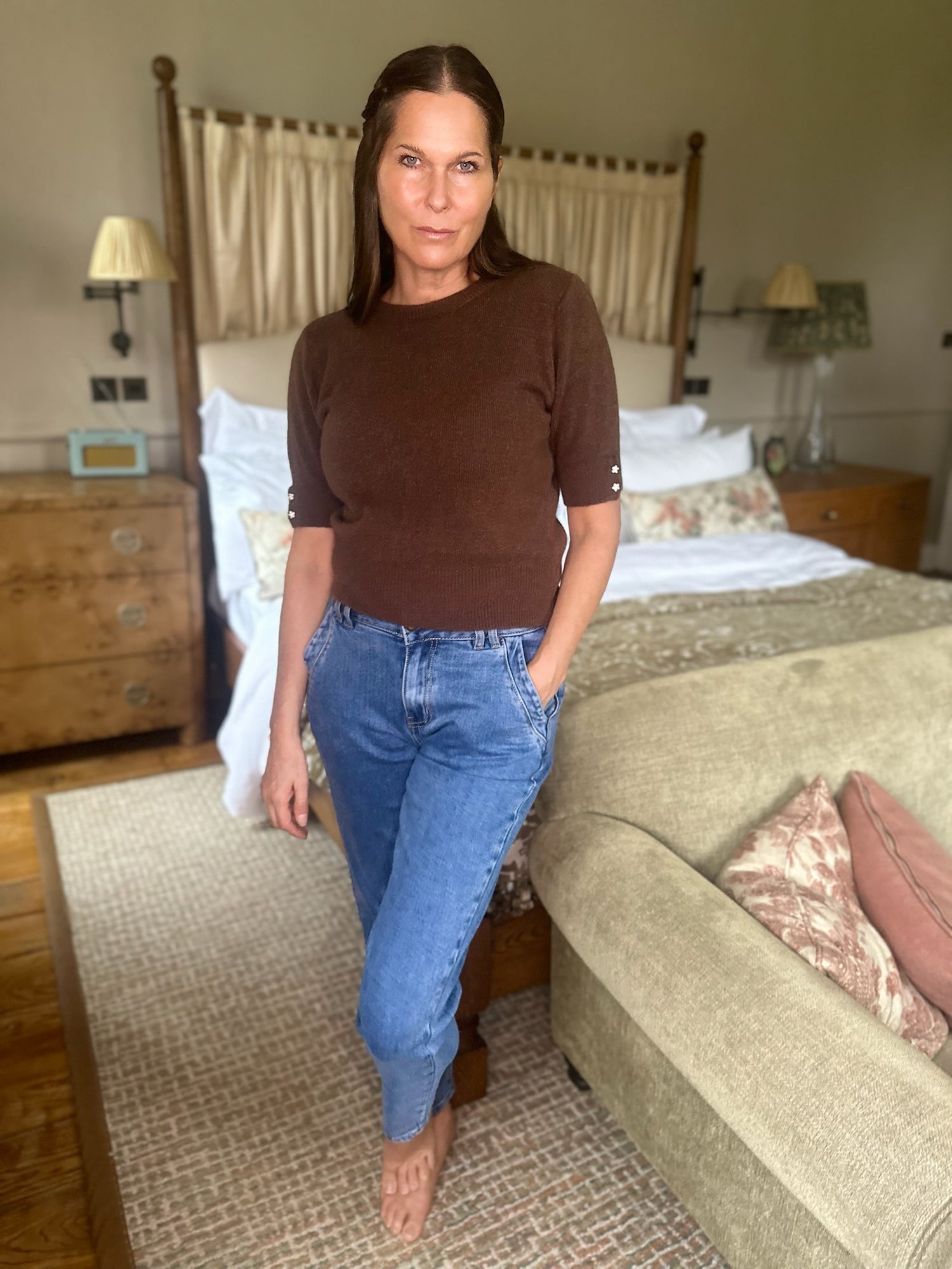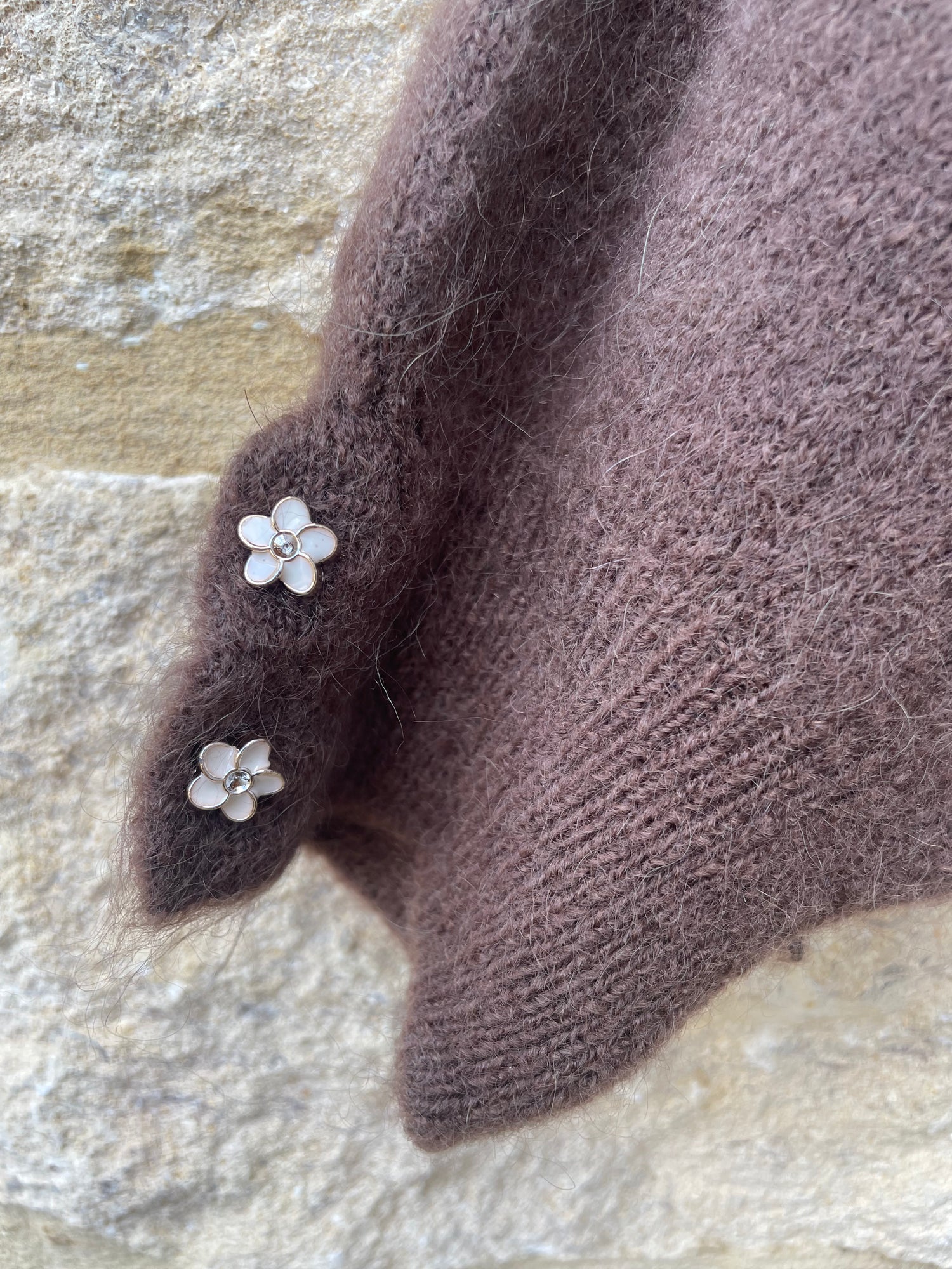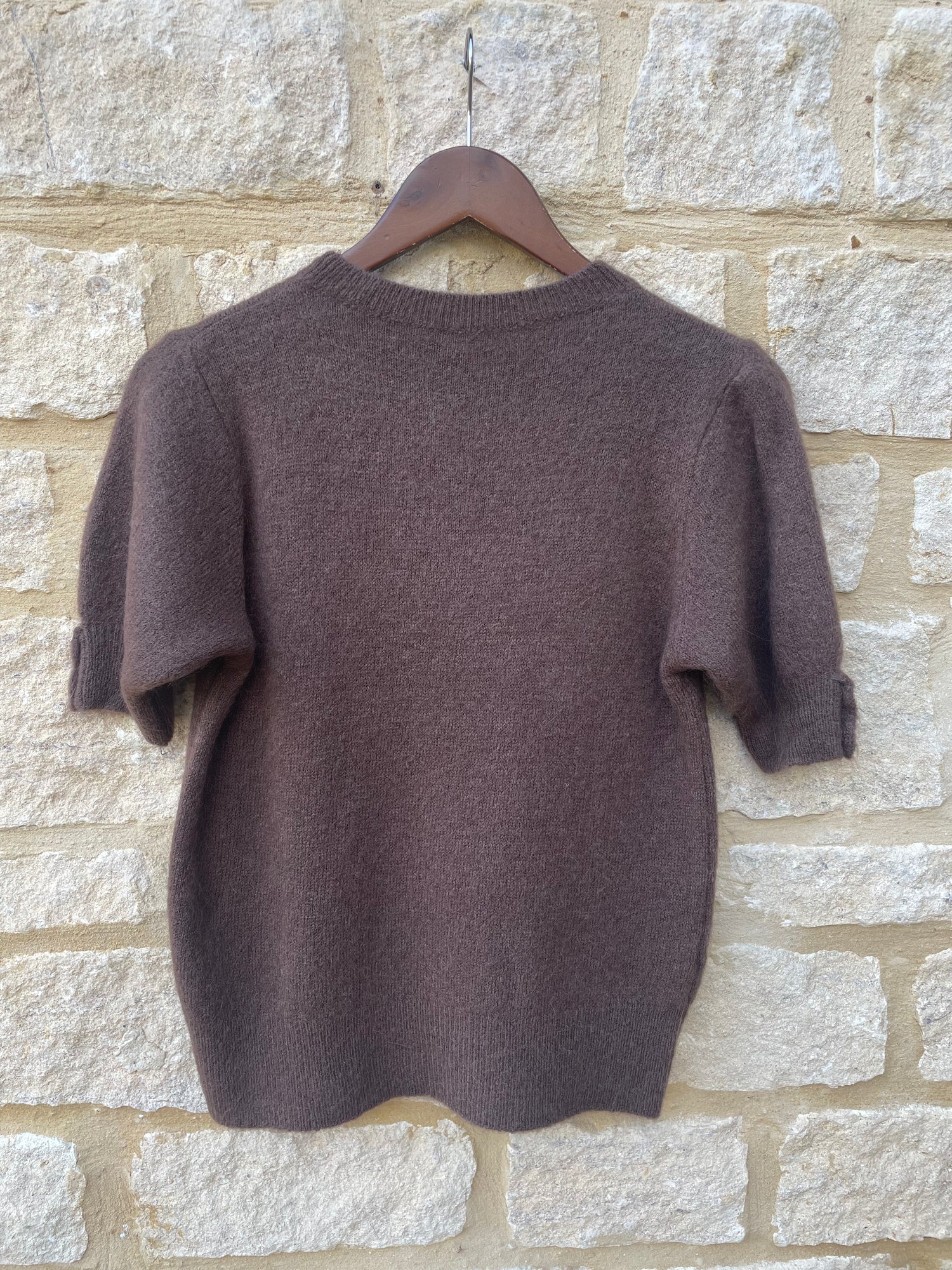 A favourite knit of ours in new colours for Autumn. Created in a sumptuously soft fabric with sweet short sleeves and a dainty flower detail, this makes for a truly special transitional piece.