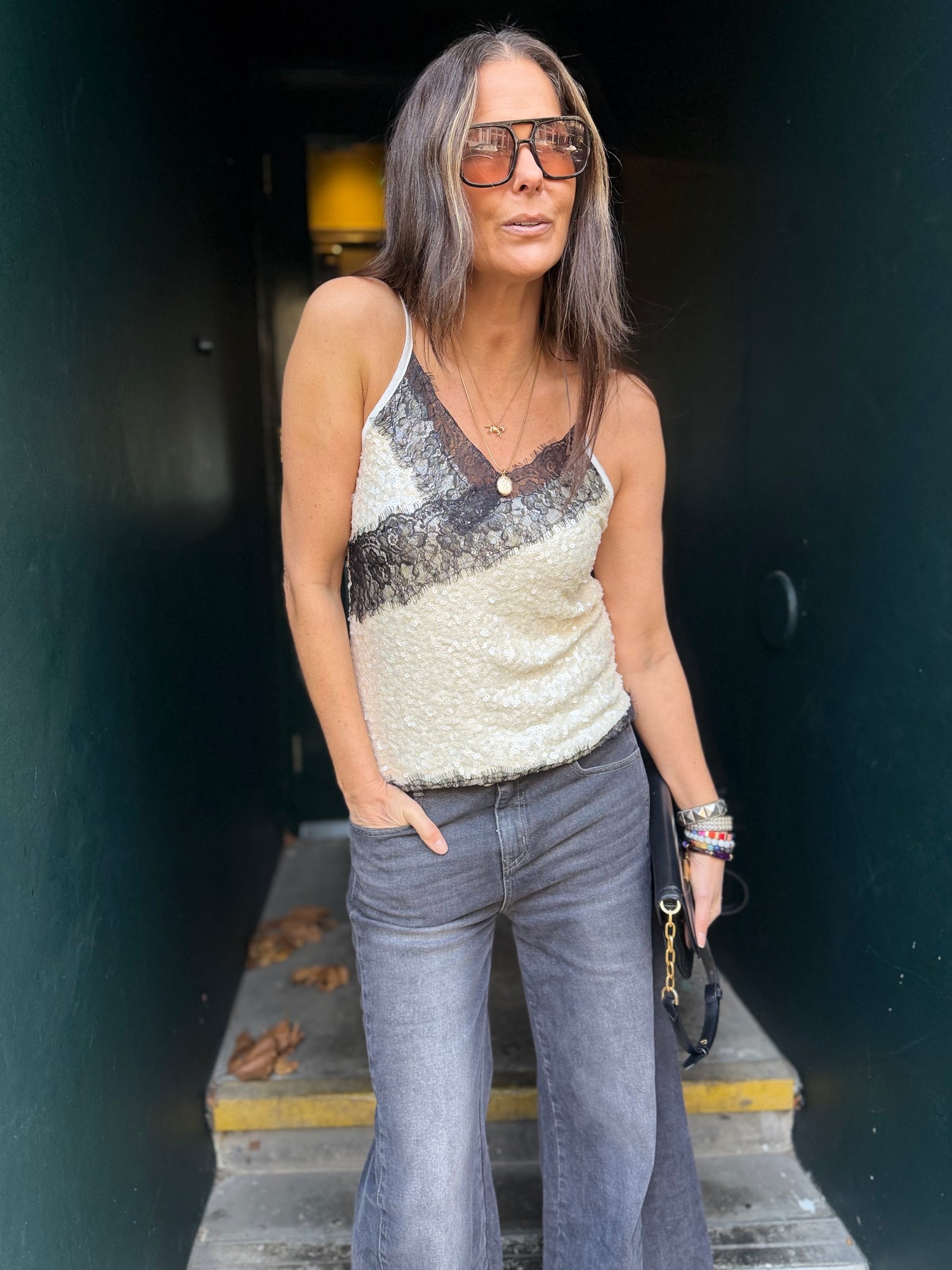Harley Lace Sequin Cami Crafted from a luxurious blend of stretch lace and delicate sequin embellishment, this cami delivers refined elegance with effortless comfort. The intricate lace detailing pairs seamlessly with subtle sequin accents for a piece that can be worn day to night. Available in four colourways.