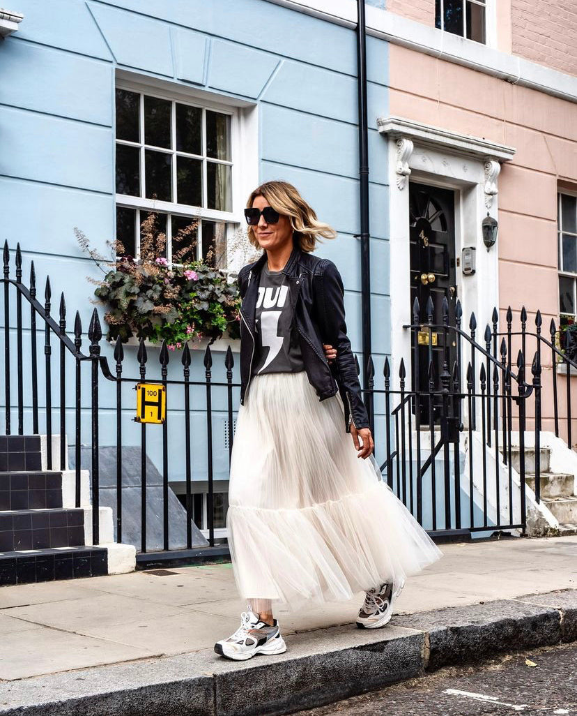 - La modelo mide 10-12 pulgadas de Reino Unido y usa talla M.