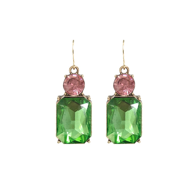 Twin Gem Earring - Green/Pink