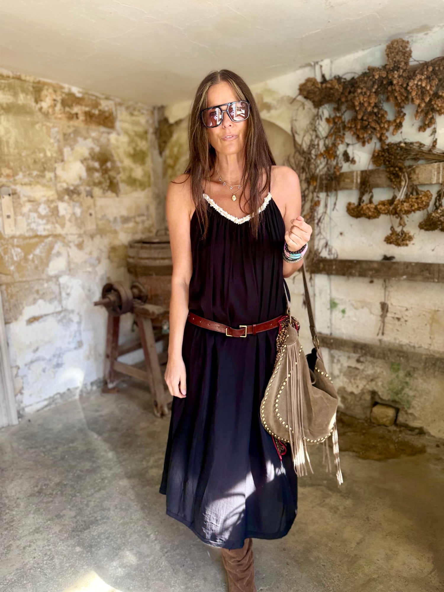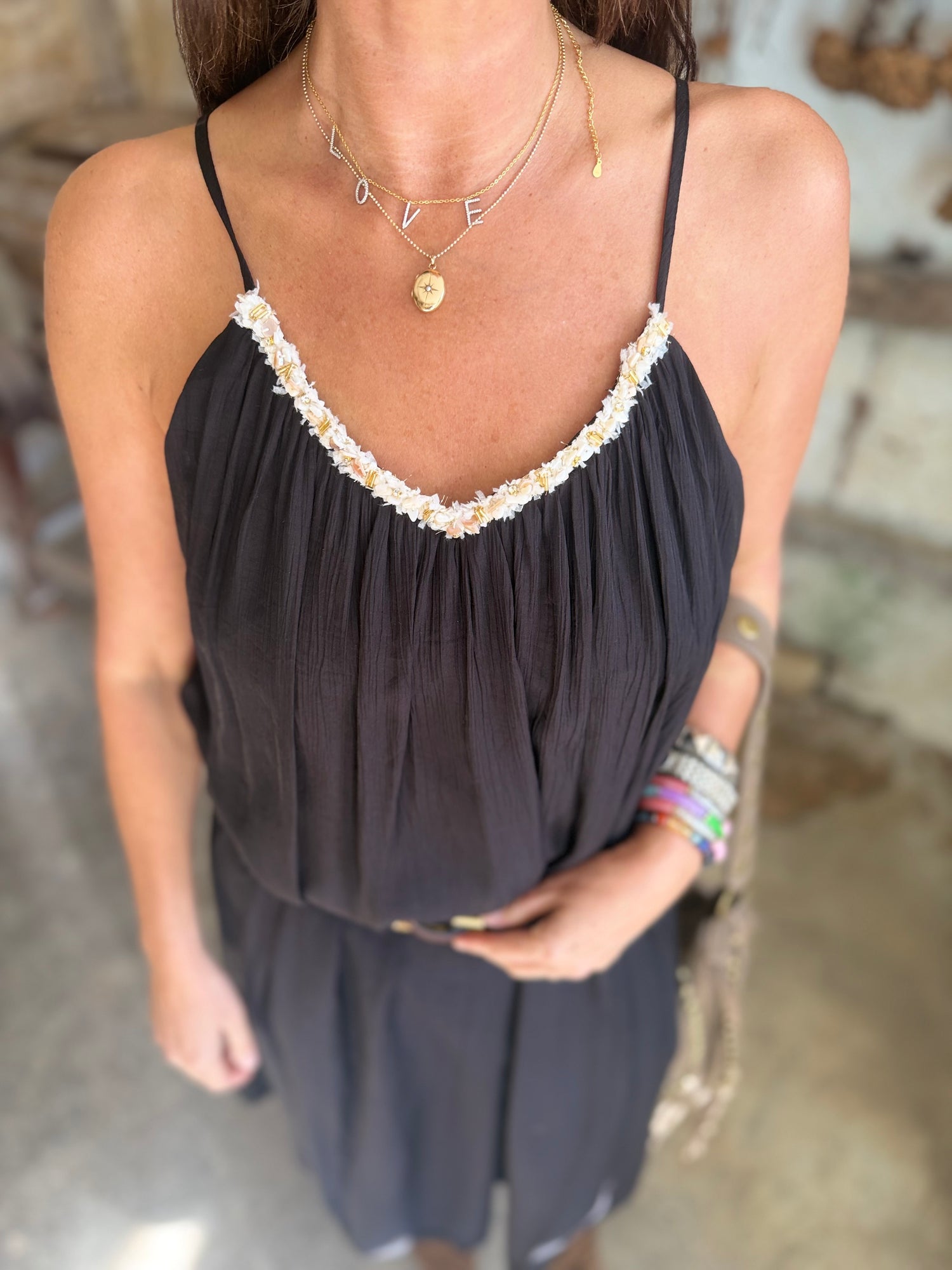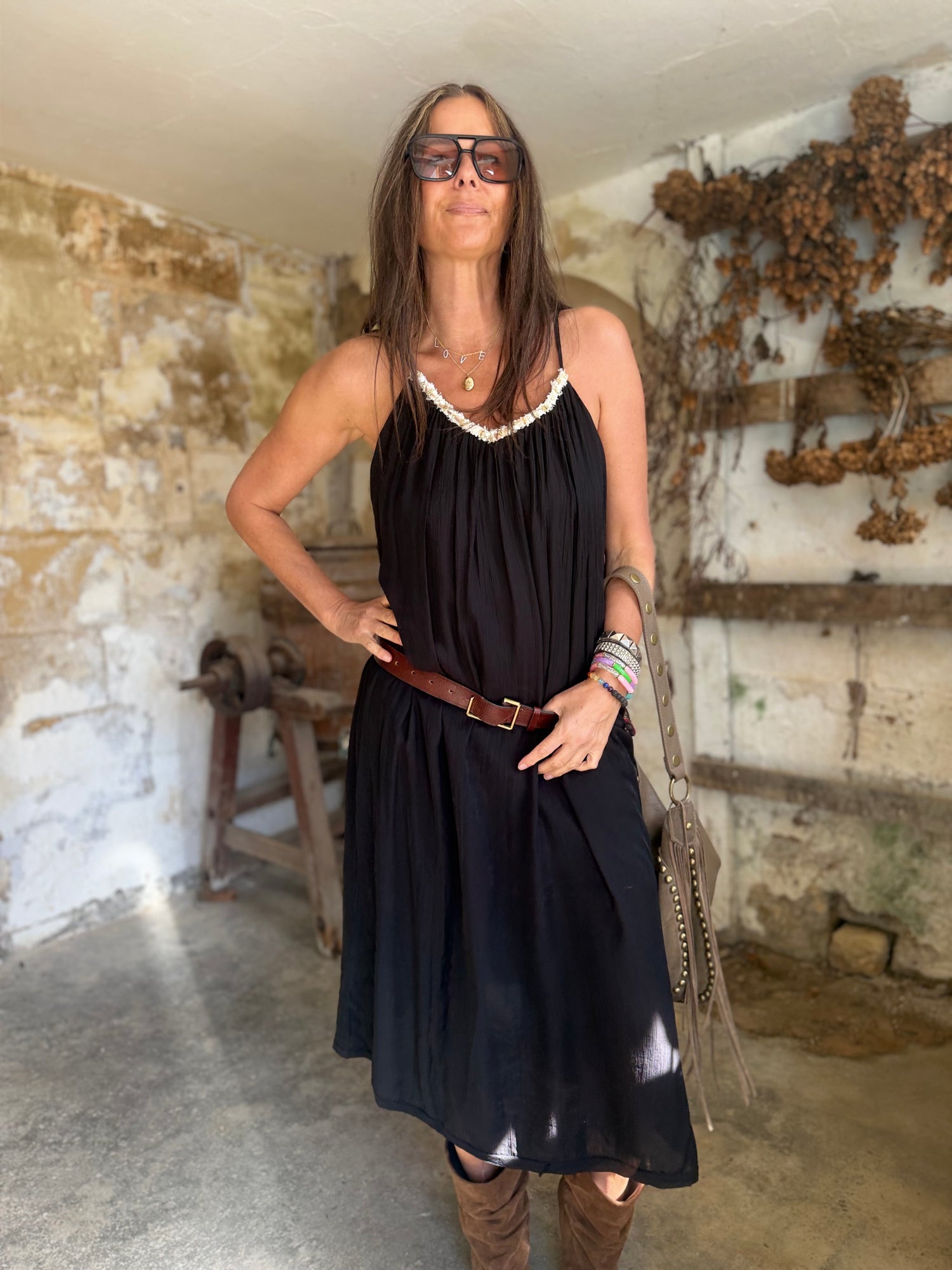 Effortless elegance meets contemporary charm in the Virelle Dress. This midi-length piece features a flattering A-line silhouette that skims the body with graceful movement. The delicate V-neckline draws the eye upward, while slender straps provide refined support. Perfect for occasions that call for polished sophistication—from evening gatherings to special celebrations.