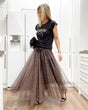 Da rienda suelta a tu lado salvaje con la falda Kate M. Esta falda, confeccionada con un lujoso tul y con un llamativo estampado animal, añade textura y estilo a tu vestuario. La cintura elástica y el detalle de lazo de satén aportan comodidad y un toque de aventura. Acepta tu naturaleza atrevida y haz una declaración con esta falda.