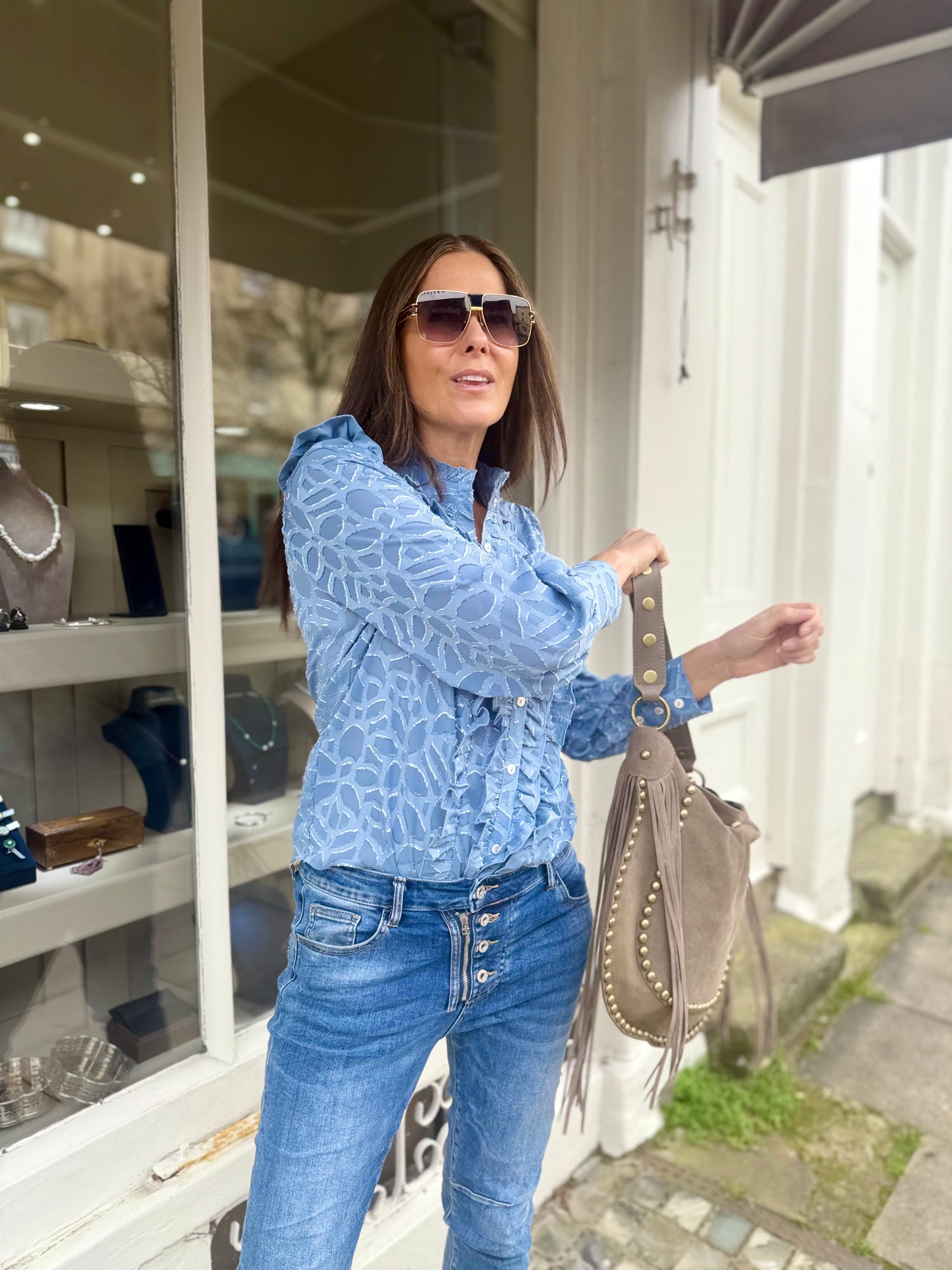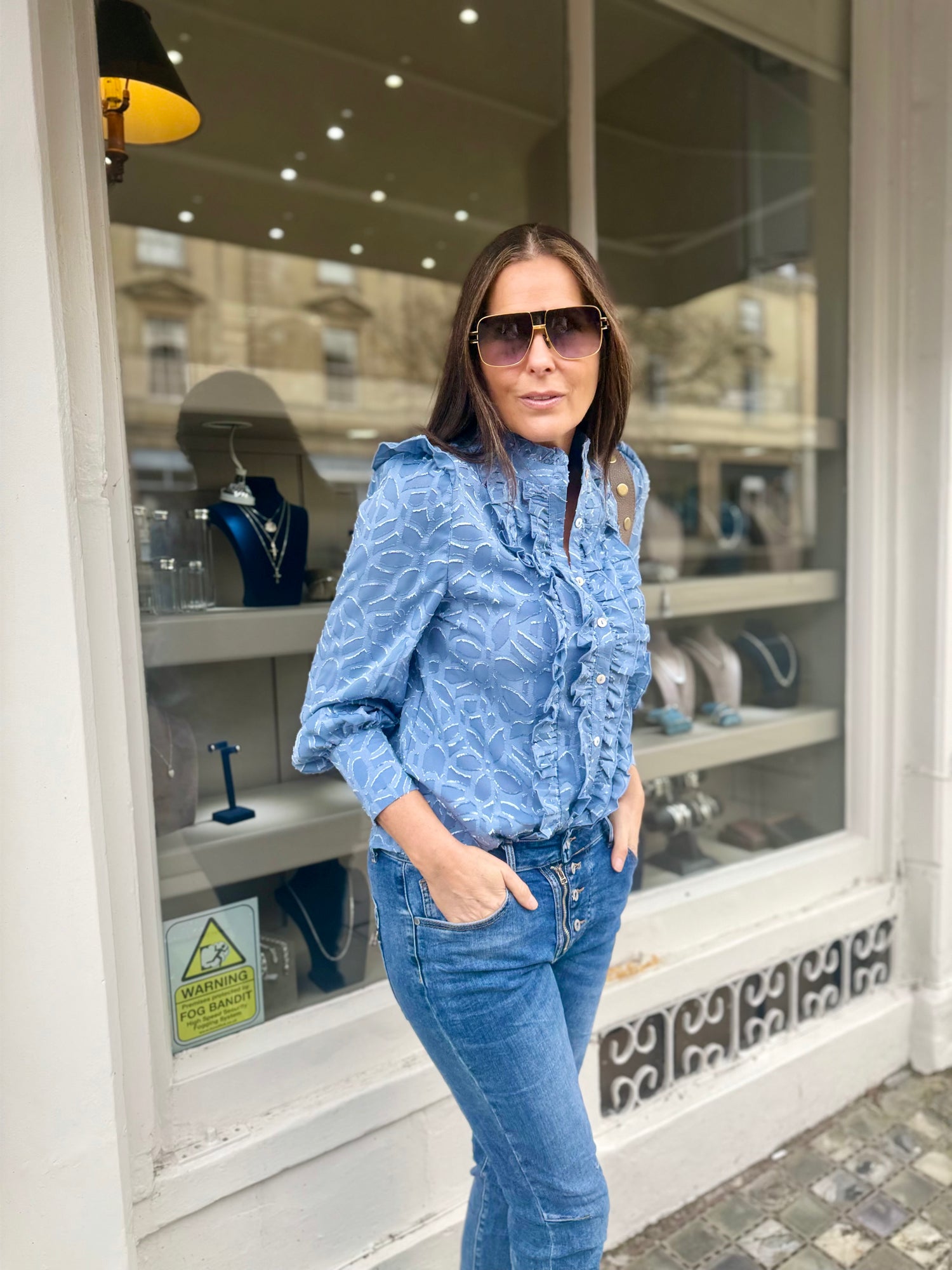 Versatile printed blouse with statement ruffles that transitions effortlessly from casual to occasion wear. Layer it over dresses for added texture, or wear solo with tailored trousers for polished evenings. The ruffled detailing adds movement and visual interest, while the print brings personality to your everyday rotation.