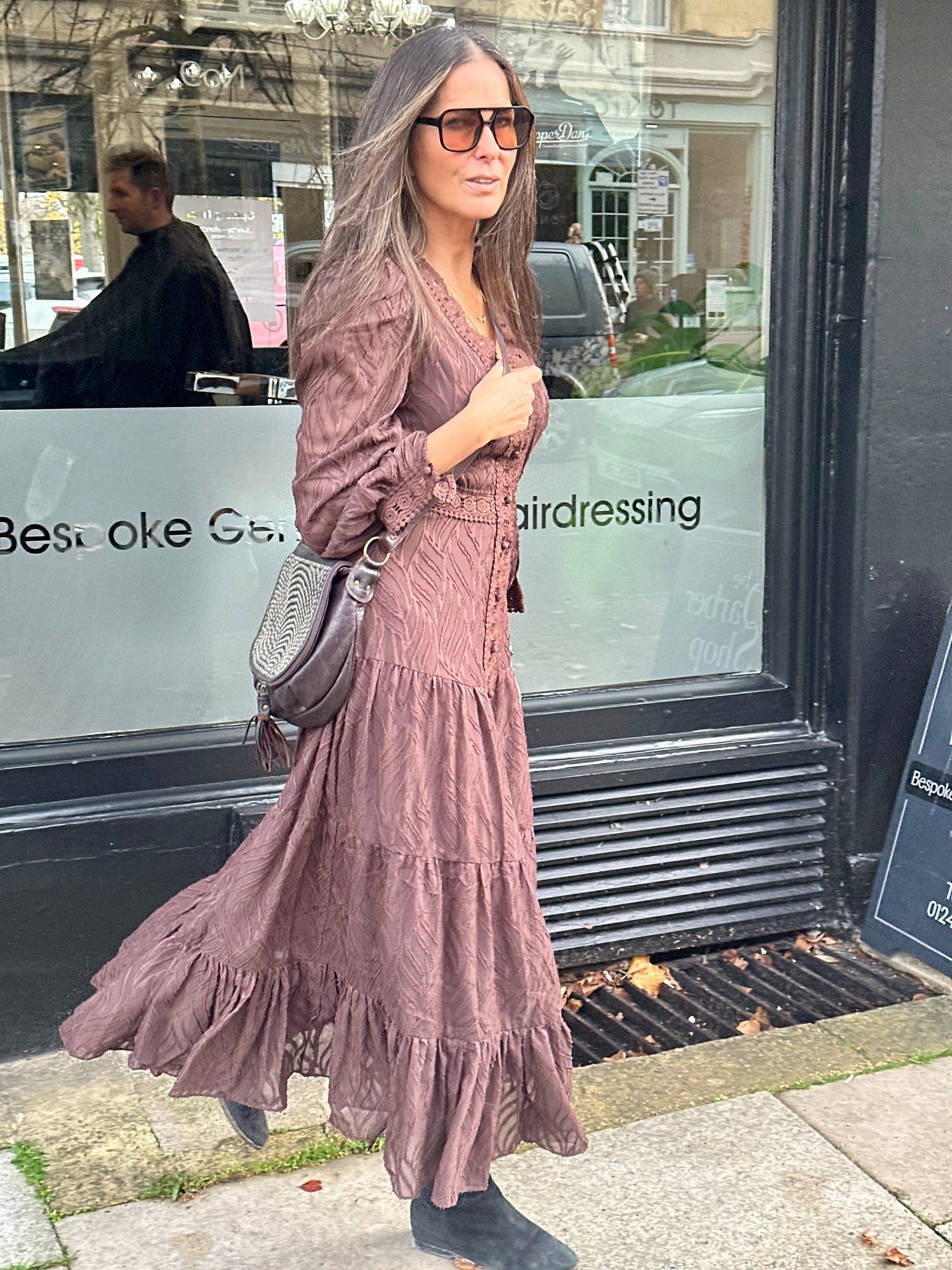 Amelie Maxi Dress - Chocolate - S is currently sold out. Available for pre-order only.