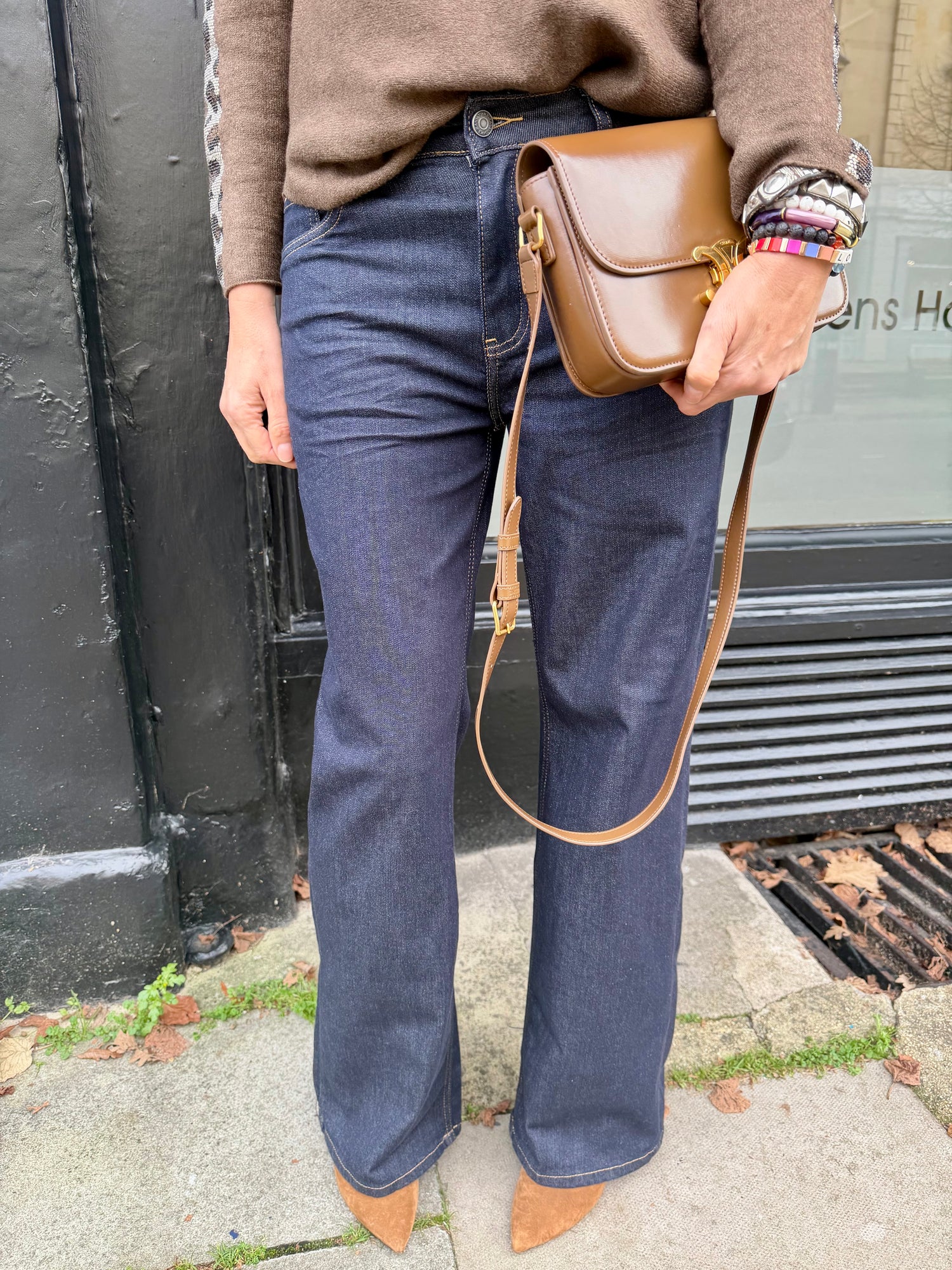Lila Jean features a flattering dark wash with a relaxed wide-leg silhouette that moves with you. Reinforced brown stitching adds distinctive detailing while premium stretch fabric ensures all-day comfort and freedom of movement. A timeless staple designed for effortless style.