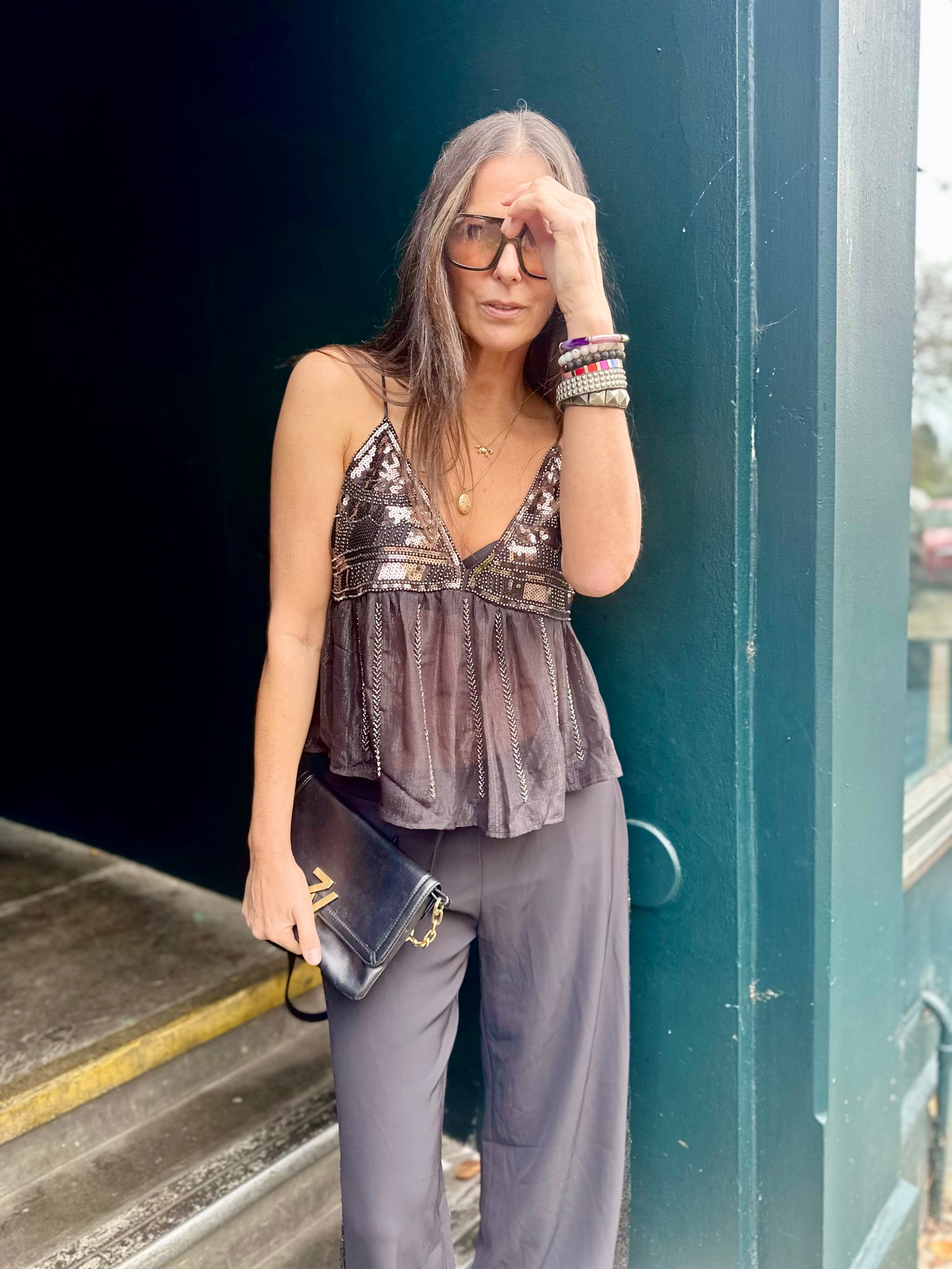 Liza Sequin Camisoles - Black - S/M is currently sold out. Available for pre-order only.